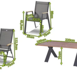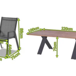 HARTMAN Silencio / Primo Sitzgruppe, Xerix/natur, Alu/Teak, 8 Multipo, 220x100cm, FSC-Teak Armlehnen