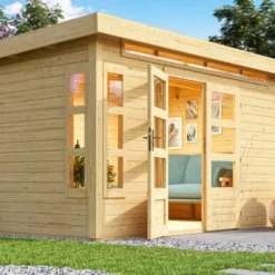 1x KARIBU Gartenhaus Kastorf 7 , naturbelassen , ca. 396 x 244 x 222 cm