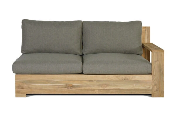 Das verwendete Teakholz und dessen hochwertige Verarbeitung machen die Lounge besonders strapazierfähig, robust und zusätzlich sehr stabil. Teakholz ist besonders witterungsbeständig und hält sowohl Hitze und Frost, als auch Regen und Feuchtigkeit aus. Es hat außerdem aufgrund des hohen Anteils an holzeigenen Ölen einen natürlichen Schutz gegen Pilze und andere Schädlinge, sodass sich die Pflege dieser Ecklounge auf ein Minimum beschränkt und Sie Ihre Zeit im Garten mit angenehmen Tätigkeiten verbringen können. Das Teakholz ist ein Naturprodukt und lässt so jeden Sessel zu einem Einzelstück werden. Diese Natürlichkeit wird mit der allmählichen Patinabildung in einem schönen Silbergrau unterstrichen. Wenn Sie dieser entgegen wirken möchten, empfehlen wir Ihnen eines unserer Pflegeöle, welches Sie im Zubehör finden.