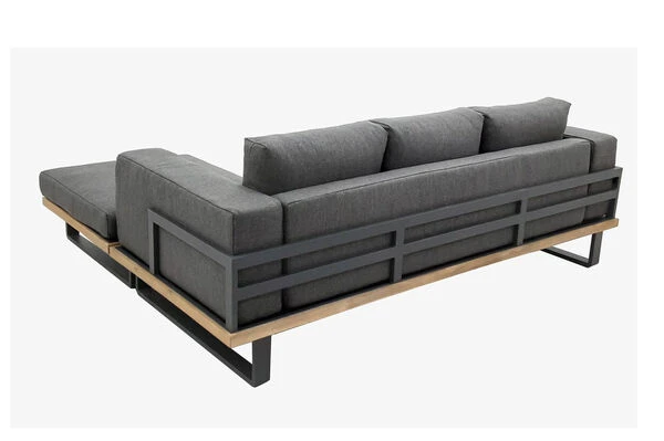 Wie wäre es z.B. mit dieser Ecklounge von OUTFLEXX® – Ein perfekter Mix verschiedener Materialien. Ein Gestell aus Aluminium kombiniert mit Applikationen aus Akazienholz. Ausreichend Platz also um es sich mit einer Kaffee- oder Teetasse gemütlich zu machen, eingewickelt in eine flauschige Decke, den nächsten Krimi oder Roman zu Ende zu lesen. So oder so ähnlich könnten die nächsten Sommerabende ab sofort bei Ihnen zu Hause in Ihrem Garten aussehen.