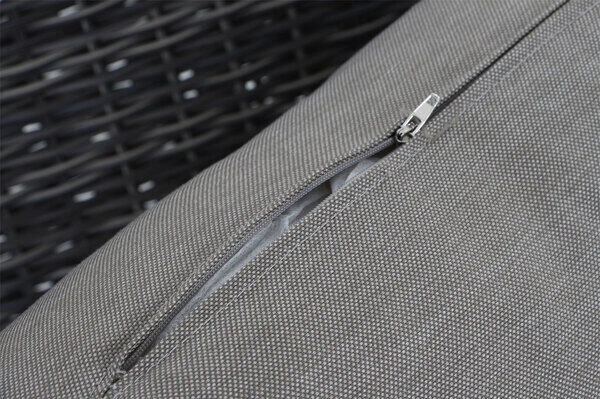 | Stabiles Polyrattan-Geflecht Das halbrunde Polyrattan-Geflecht GARDINO® in der Farbe charcoal grey zeichnet sich besonders durch seine Lichtechtheit und Stabilität aus. Es ist zudem besonders wasserabweisend und wetterfest. Das robuste Material schützt das Möbelstück somit bestens vor Witterungseinflüssen. |
