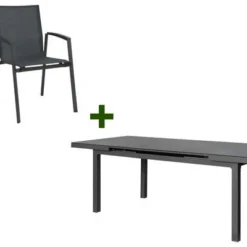 STERN New Top Esstischgarnitur aus Aluminium/Textilene, Anthrazit, 6 Stapelsessel und Premium Ausziehtisch 180/240x100x77cm