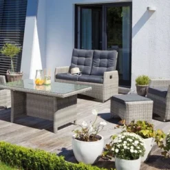 Diese komplette Dining Lounge von Sunny Smart lässt selbst bei anspruchsvollen Gartenliebhabern wirklich keine Wünsche offen.
